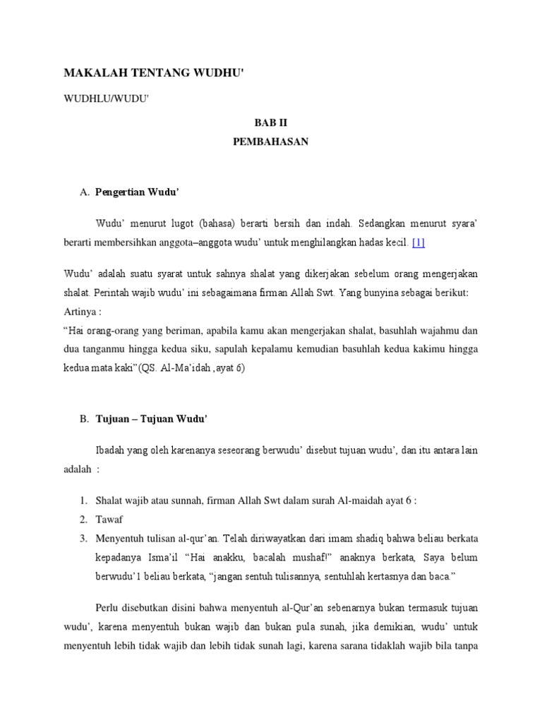 Tujuan Wudhu / Manfaat Wudhu Sebelum Tidur Artikel Kodham. View tujuan dan manfaat wudhu.docx from rel misc at malikussaleh university. Tujuan utama kita berwudhu adalah mengharap ridha dan kedekatan dengan allah subhaanahu wata'ala. Wudhu bertujuan membersihkan kotoran di tubuh, serta membersihkan dari najis dan hadas kecil di tubuh. Wudhu adalah cara mensucikan anggota badan dari hadats kecil. Tentunya setelah dia menjalankan istinja'.